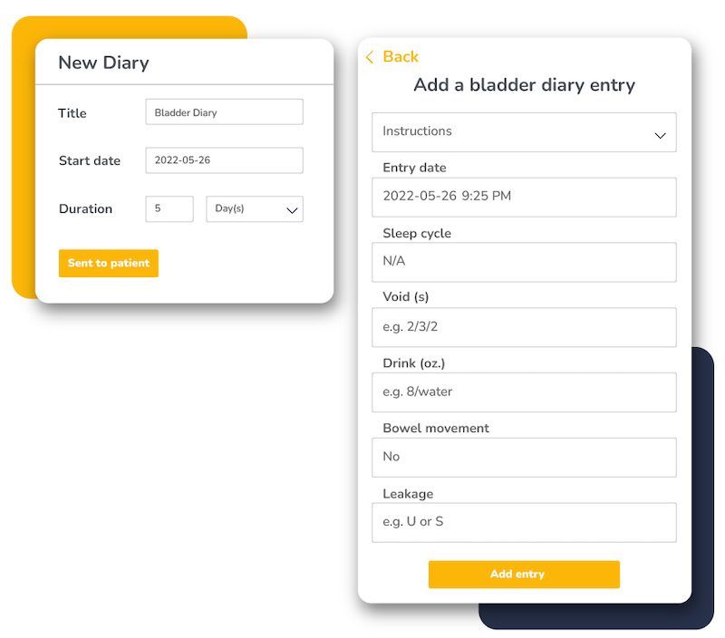 Embodia offers a large library of questionnaires and outcome measures that include automated scoring. You can also build your own questionnaires including diaries for self-reported tracking (such as sleep or stress diaries). For the pelvic health therapists, we offer digital bladder and fibre diaries that can be completed on any device (patients will thank you - it’s much easier to bring a phone to the bathroom than a piece of paper!)