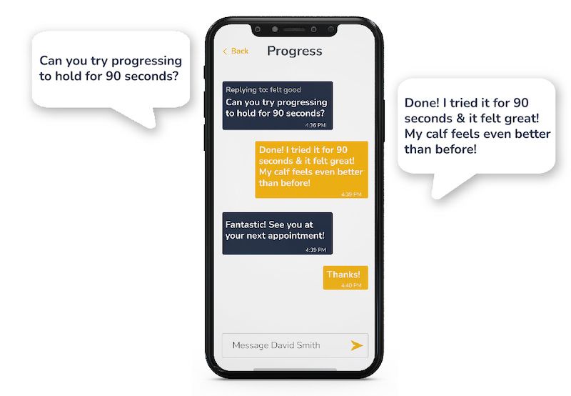 Patients can take notes on exercise programs and track their progress, and then receive real-time feedback from their trusted practitioner. Quickly send, receive, and access messages on the go with the Embodia mobile app. Receive notifications when you have new messages and keep all patient communication on one secure portal.